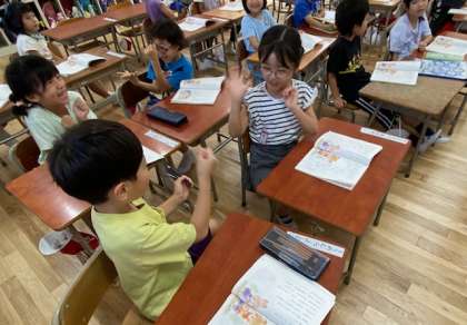 1年生の国語では、『かいがら』というお話を、登場するクマの子とウサギの子に分かれて読みました。