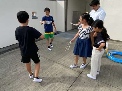 科学クラブでは、今日は大きなシャボン玉を作ろうと、ハンガーに毛糸を巻いたものを使って大きなシャボン玉作りにチャレンジしていました。作ろうとしては破れたり、小さなシャボン玉しかできないこともありましたが、大きなシャボン玉ができそうになると「うわー」とみんなの注目を集めていました。