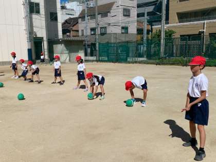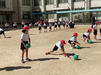 1年生の体育は、ボールを転がす運動の続きです。