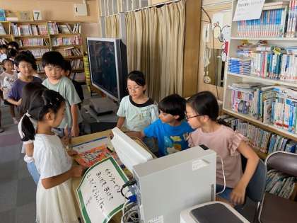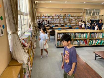 3年生の図書の時間をのぞいてみました。これまで借りた本を図書係に渡しチェックしてもらったうえで、本を返却をしていました。