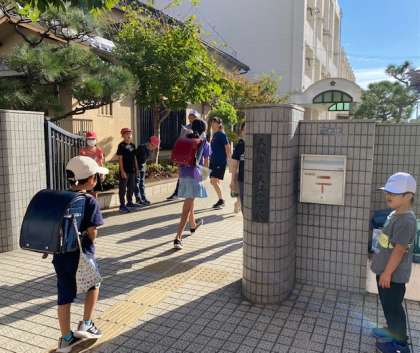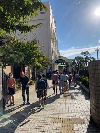 今日の天気は『曇り』という予報ですが、朝からまぶしい朝日が子どもたちを照らしています。気温は22度。今朝も秋を感じる朝です。