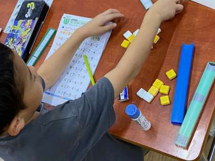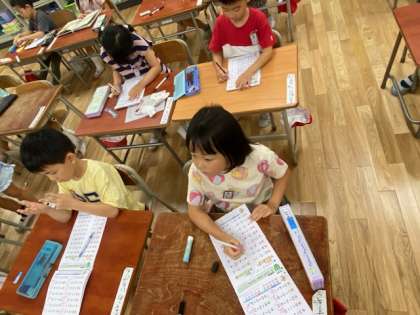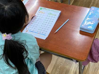 1年生の教室をのぞくと、計算ドリルに取り組んでいるところでした。