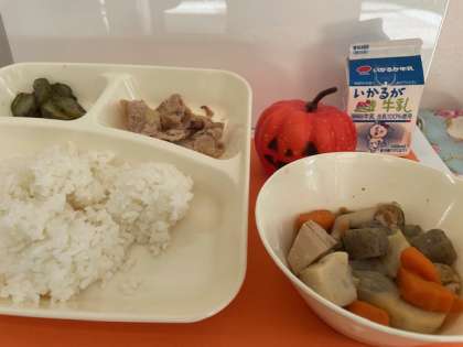 豚肉のねぎじょうゆ焼き ふきよせ煮 きゅうりの赤じそあえ