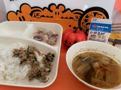 鶏肉のゆず塩焼き ソーキ汁 ツナ大豆そぼろ
