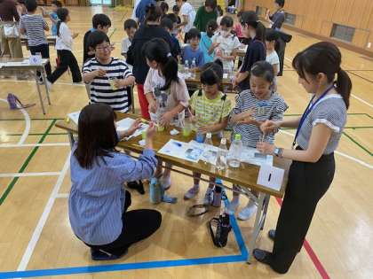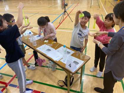 3年生の半分ぐらいの子は未体験とあって、物質が混ざることでできる不思議な柔らかさや感触の色とりどりのスライム作りは、とても盛り上がっていました(^^)