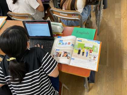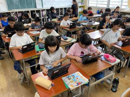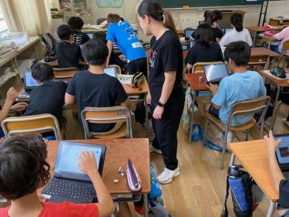 5年の外国語では、紹介したい有名人を選んで、その人の特徴からクイズを考えるということにチャレンジしました。