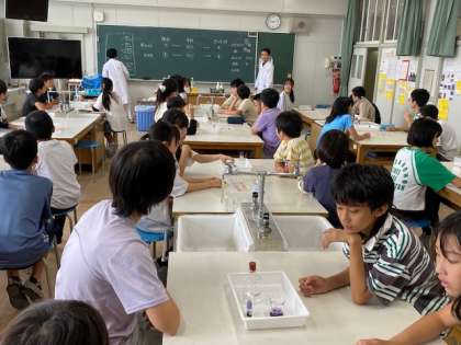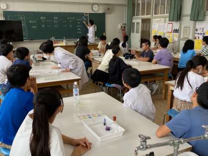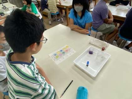 それぞれの液体にBTB液を入れて各水溶液の色の変化を見るのですが、強酸性や弱酸性のように、細かい違いにも気づいていました。
