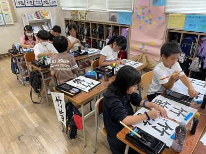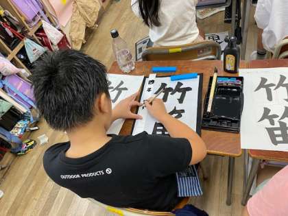 4年生の習字、今日は『竹笛』という字を書きました。