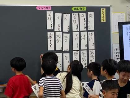今日の3年生の学級活動は3年い組の大漁旗の漢字を決めようと学級会をしました。