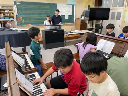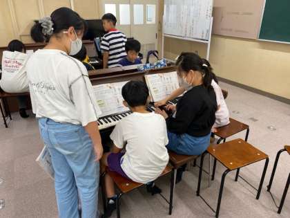 p『茶色の小瓶』の主旋律に合わせて、和音を弾くというもの。合格者には、ベートーベンのスタンプが押されていました。