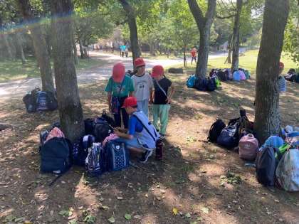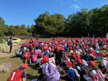 全校遠足ではおなじみ、なかよし班(1年〜6年までの子の混合班)で謎解きをするオリエンテーリングを行います。