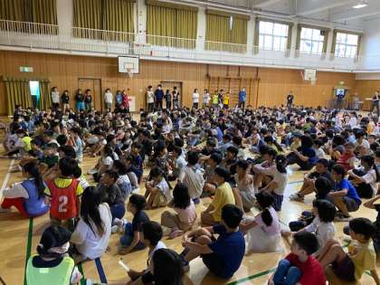 今日の児童集会は、集会委員会による秋にまつわる3択クイズです。