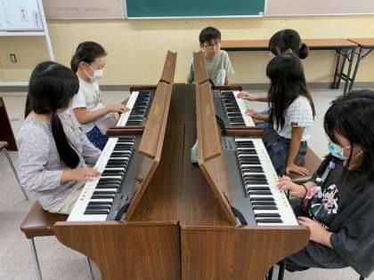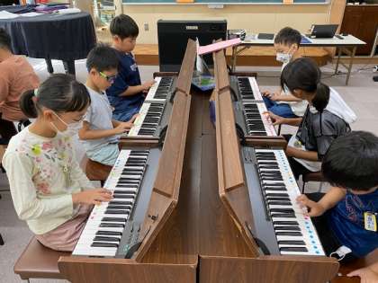 3年生の音楽では、オルガンで『キラキラおひさま』という曲を弾いていました。