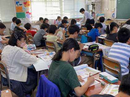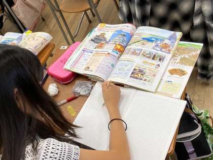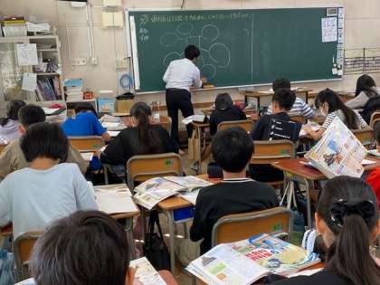 教科書や資料集を参考に考えをまとめていきます。思考ツールを用いて、考えを出しやすくしていました。