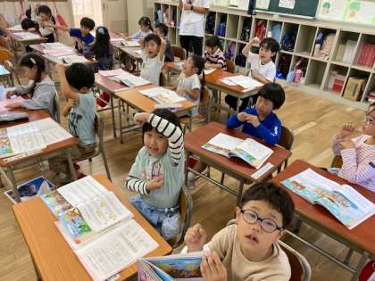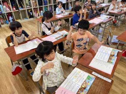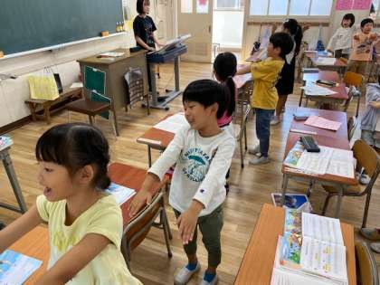 1年生の音楽では、『おさるのだいくさん』『ドレミのうた』を振り付けありで歌っていました。