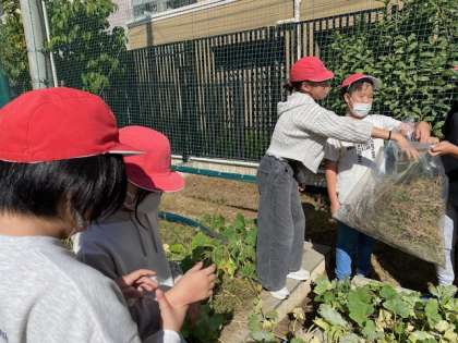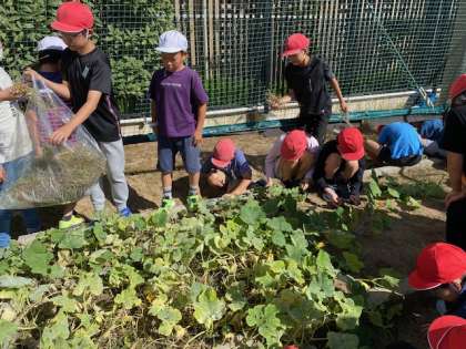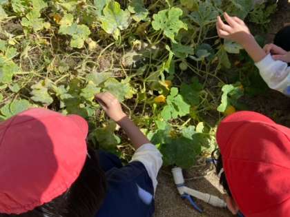 5年生の理科では、自分たちで植えて育てている『かぼちゃ』の様子を見に行きました。