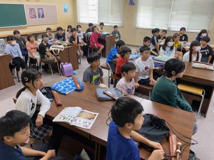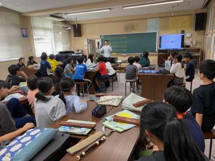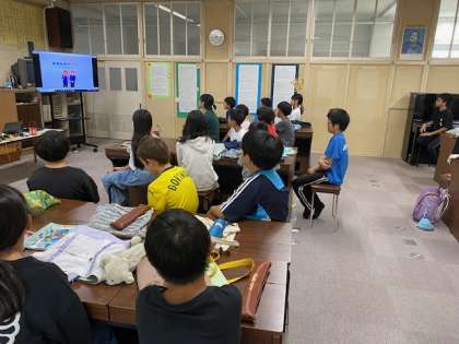 5年生の総合では、発表された2025年大阪・関西万博の概要について動画を試聴したり、テーマやテーマソングについて学んだりしました。