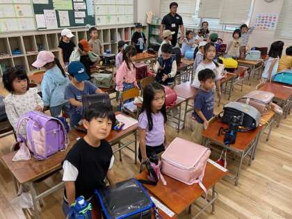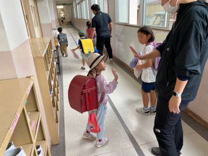 1年生の帰る時の様子です。帰る時にタッチして笑顔で帰る子もいました(^^)