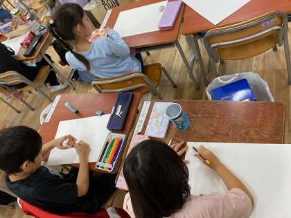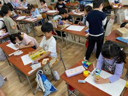 箱がそれなりに大きいので、立って回り込んで書いている子もいました(^^)