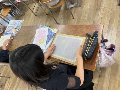 4年生の図工では、『光のさしこむ絵』の続きです。
