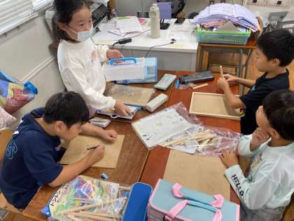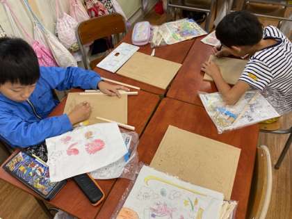 3年生の図工では、『トントンコロコロゲーム』の地の部分の下絵を描いていました。