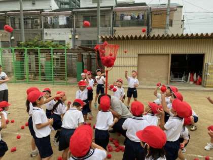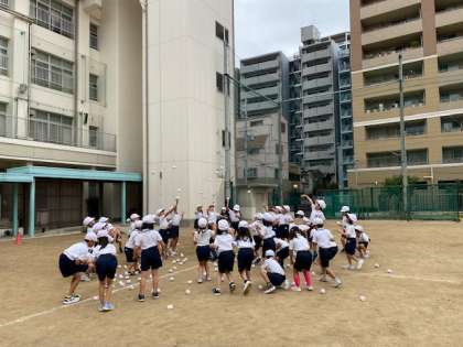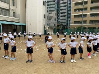 1年生は運動会の玉入れの練習を行いました。