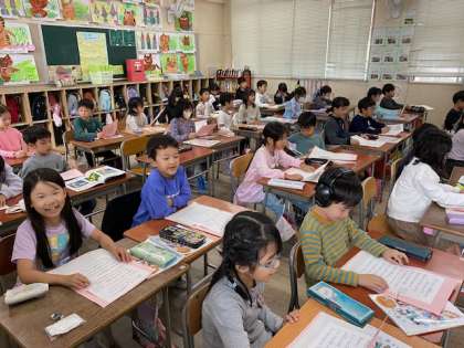 2年生の教室をのぞいてみると、運動会で歌う『勇気100% R6運動会バージョン』や応援合戦の練習をしていました。