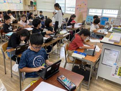 4年生の国語では、「くらしの中の和と洋」を読んで学んだことを生かしながら、身の回りの「衣・食・住」の和と洋について調べ、新聞にまとめることにチャレンジしています。