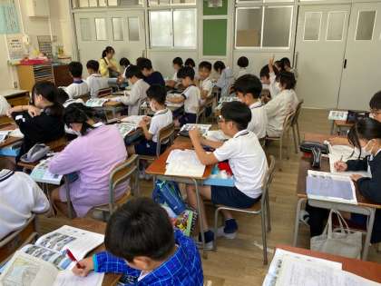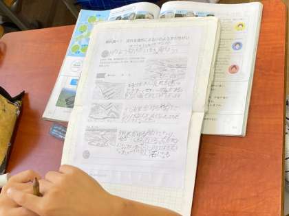 山の中、平地、海の近くでは、それぞれ川の様子は異なります。教科書や資料を見ながら、それぞれの違いを考えていました。
