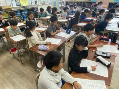 4年生の算数では、計算の順序や仕方を工夫して計算する辺りのテストが返され、問題を振り返っていました。