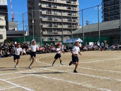 Power of Soranで大漁旗が振られていましたが、クラスごとに話し合い、迫力ある旗ができました。ある子は、始めこけたて転んだのですが、音楽が鳴り出したら笑顔で演技。成長ぶりが伝わりました。