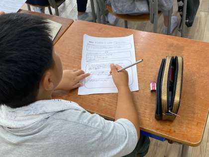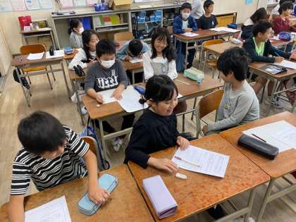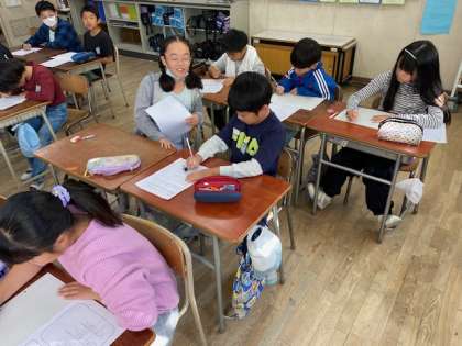 4年生の教室をのぞいてみると、運動会の作文に取り組んでいました。
