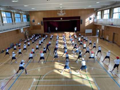 体育館に近づくにつれ「そいやさー!」の声が聞こえてきました。運動会再び!という感じでしたが、運動会で踊ったPower of Sotanのテストが行われていました。