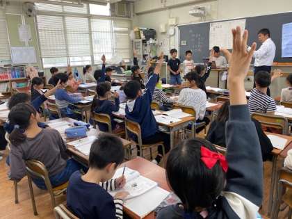 示された小数の個数分、先生の端末に書き込めるとあって多くの手が挙がりました。