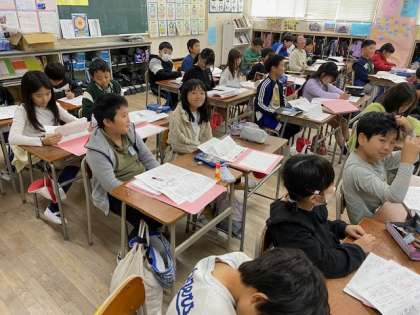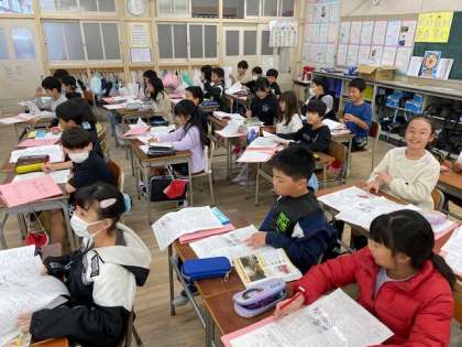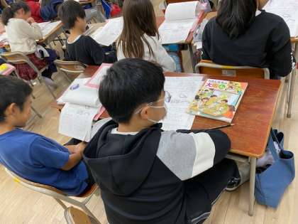 4年生の社会科では、『大阪の祭りや行事、文化財』にまつわるテストが返却されていました。