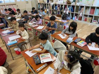 1年生の生活科では、『あき見つけ』ということで、上汐公園に行って、秋に見られるものを発見しに行きました。