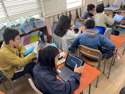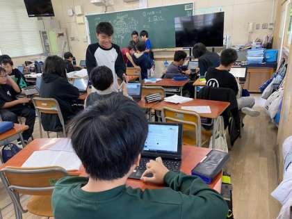 6年生の算数では、比例の特徴について学習をしました。理解できた後は、一人ひとり学習用端末を取ってきて、ナビマで復習問題に取り組みました。