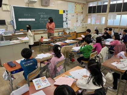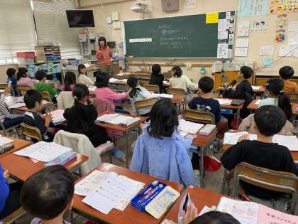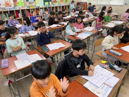 2年生の音楽では、『おまつりのリズムをならそう』とクラベスという楽器を使ってチャレンジしました。