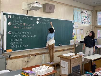 2年生の算数では、『8×7をくふうして計算しよう』と取り組んでいました。