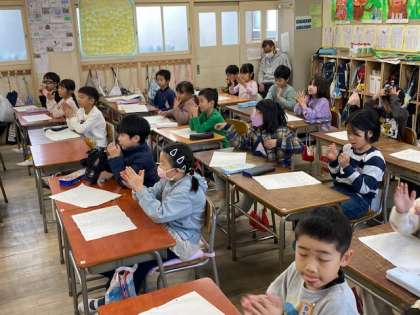 発表が終わると大きな拍手が友だちから送られていました(^^)