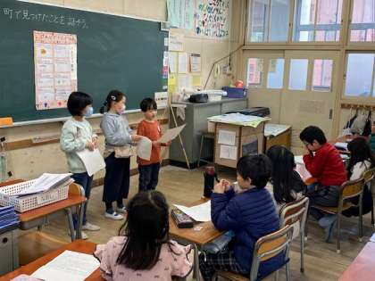 2年生の生活科では、まち探検でインタビューしたことを振り返って書いた作文を発表しました。