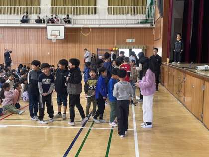 続いて、図書委員会からは読書ビンゴの表彰、放送委員会からは給食時間にかける音楽のリクエストについて、運動委員会からは、スポーツ大会として行ったリレーの表彰がありました(^^)