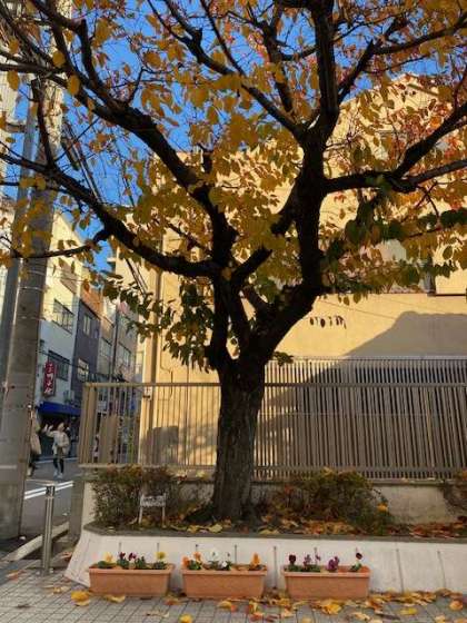 一人の子が、朝、大江桜を見てひと言。「下から順に(葉の)色が変わってる。」と。
