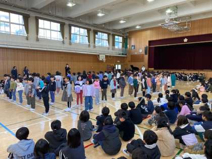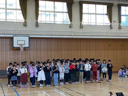 今朝は音楽集会をして出発しました。発表したのは、1・3・5年の子たち。