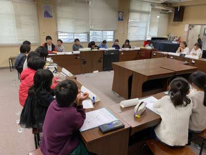 4年生以上の各クラスの代表と、各委員会の代表とで、2学期の振り返りと、課題について、話し合いました。