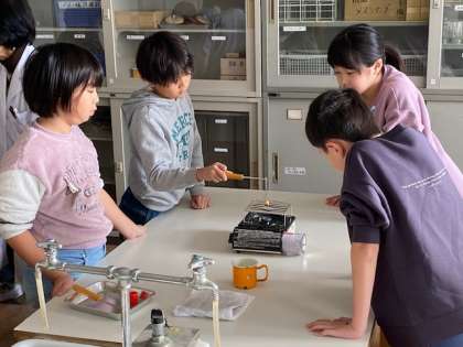 火を取り扱うこともあって、ガスコンロの扱いや熱している時の注意事項、熱したあとの冷ます処理の仕方と、丁寧に理科補助員の先生に教えていただきました。