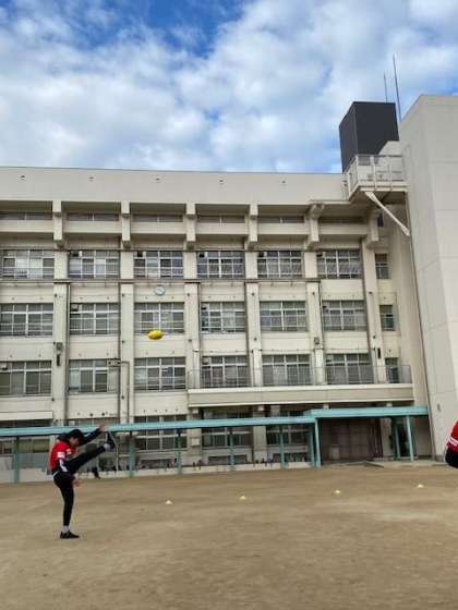 3年生は、朝、紹介のあったラグビーのレッドハリケーンズのお二人をゲストティーチャーに、ラグビーの基本となる運動などを教わりました。