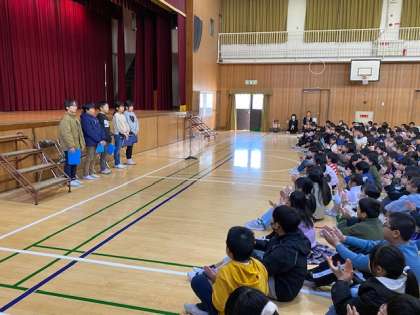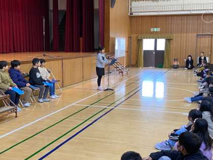 続いて3年生・4年生の代表児童から3学期にチャレンジしたいことについて発表。大きな拍手が送られました(^^)