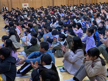 校長先生からは、転校生や新しく勤務するサポーターの紹介のあと、区の広報誌1月号に大江小学校のルワンダとの交流の様子が掲載されたことを紹介。総仕上げとなる3学期、新しい学年になった時のことを振り返り、その時に立てた目標を思い出し、総仕上げしていこうと呼びかけられました。