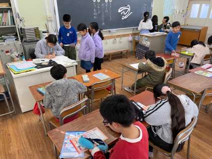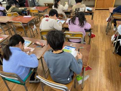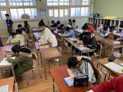 3年生の教室をのぞくと、連絡帳を書いて先生に点検してもらったり、3学期用の漢字ドリルや計算ドリルに名前を書いてたりしていました。